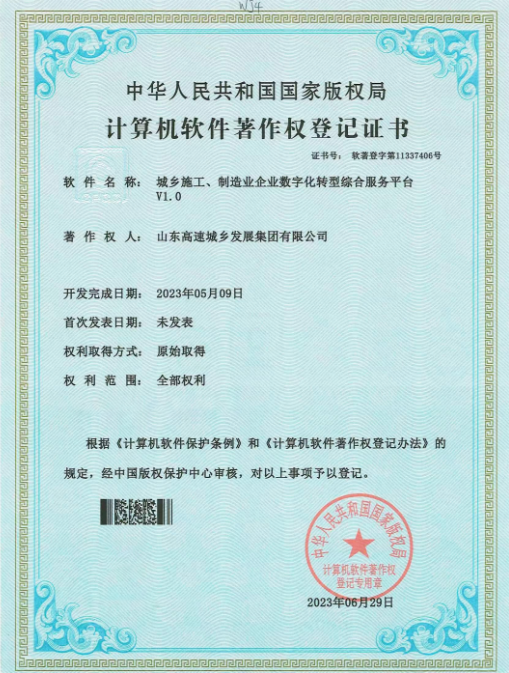 山東高速城鄉(xiāng)發(fā)展集團首獲計算機軟件著作權(quán)